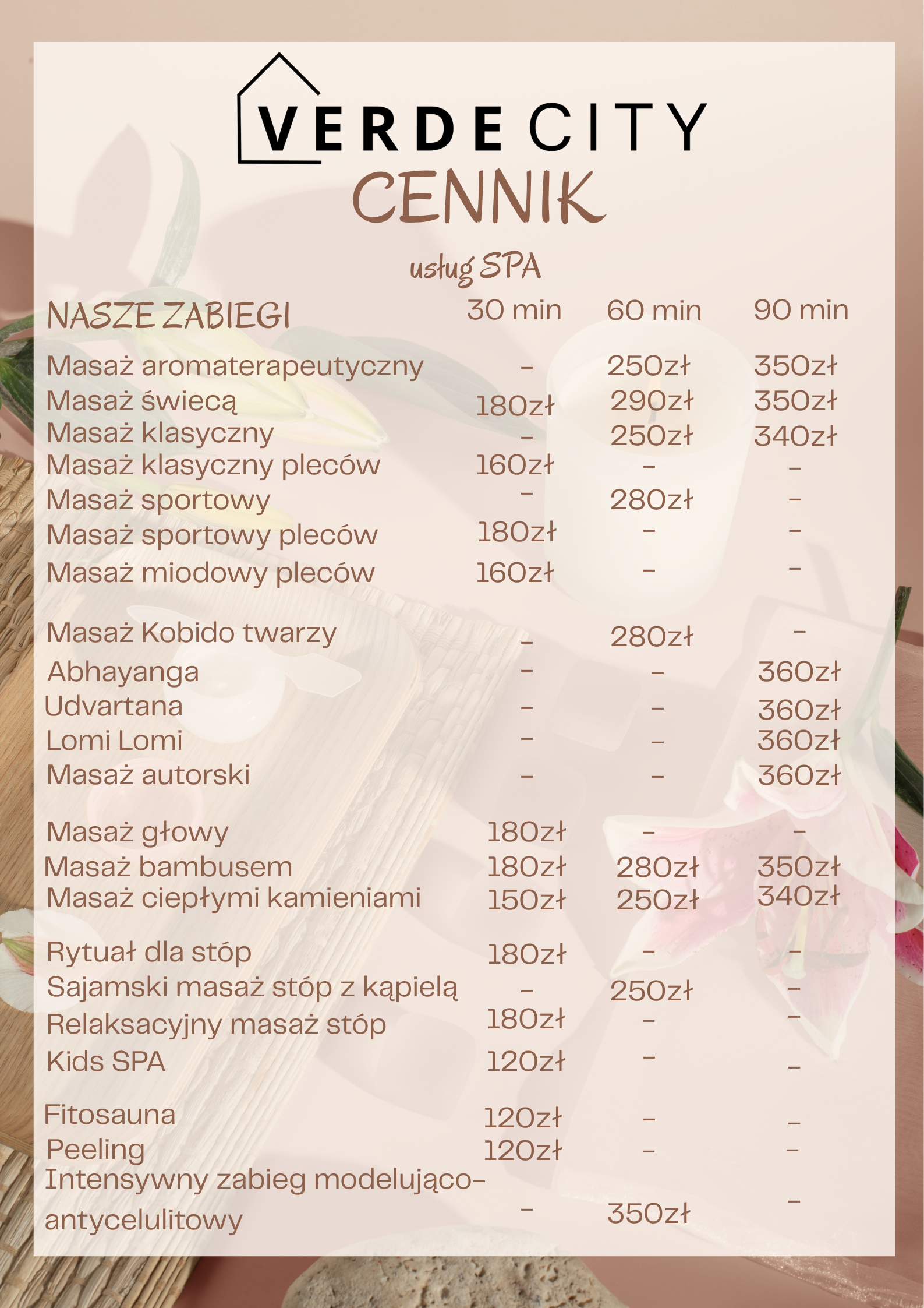 SPA Verde City to nie tylko zabiegi — to doświadczenie. To chwila uważności, głębokiego oddechu i świadomego dbania o siebie. Niezależnie od tego, czy szukasz intensywnej regeneracji, czy krótkiej przerwy w ciągu dnia — znajdziesz u nas przestrzeń, w której odzyskasz energię.